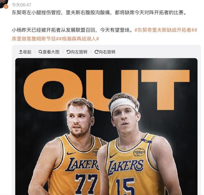 而如今這一次再度在主場(chǎng)迎戰(zhàn)湖人隊(duì),楊瀚森也被從發(fā)展聯(lián)盟球隊(duì)當(dāng)中征召回來,很多中國(guó)球迷都期待可以看到楊瀚森出戰(zhàn),再度在有限的時(shí)間里面去證明自己。在上一場(chǎng)對(duì)戰(zhàn)約基奇的掘金比賽中,本來很多球迷還期待著楊瀚森可以和自己的偶像對(duì)位,沒想到最終卻非常遺憾,一分鐘的出場(chǎng)時(shí)間都沒有拿到。這一次球隊(duì)把他主動(dòng)征召回來,自然是希望他能夠有所表現(xiàn),所以不排除楊瀚森這一場(chǎng)對(duì)戰(zhàn)湖人隊(duì)的比賽可以獲得更多的上場(chǎng)時(shí)間。
