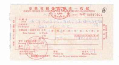 公司對老年協(xié)會的捐助3000元,蜀源村8000元