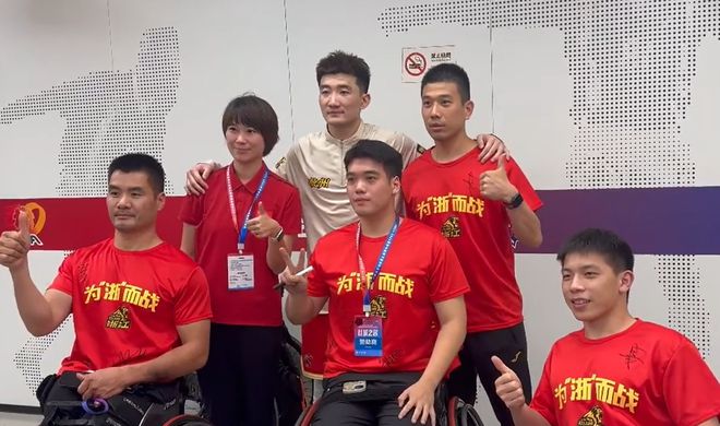暖心一幕!孫銘徽賽后在通道內(nèi)與輪椅籃球運動員合影并簽名