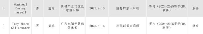 CBA廣東和新疆隊倆外援均藥檢出四氫大麻酚,會面臨什么處罰?