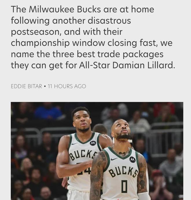 為字母哥甩賣利拉德?美媒提議雄鹿交易利拉德,給出三個交易方案
