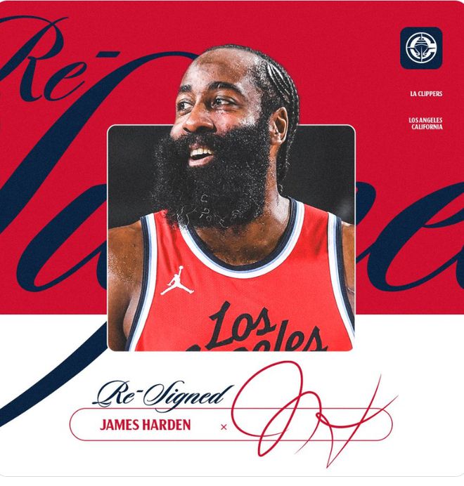 快船官宣3筆簽約!哈登新合同具體細(xì)節(jié),冠軍中鋒加盟馳援