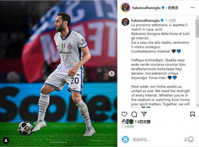 恰爾汗奧盧社媒:下周需要所有國(guó)米球迷的力量,我們一起戰(zhàn)斗!