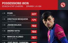 227次,佩德里是本賽季西甲截至目前贏得球權(quán)最多的球員