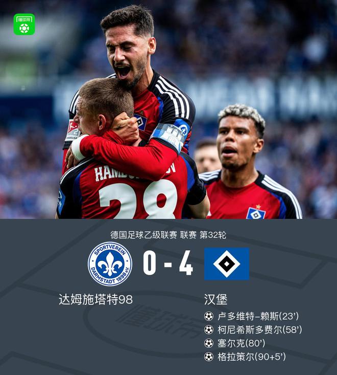 下輪取勝即可重返德甲!漢堡4-0大勝達姆施塔特,塞爾克建功