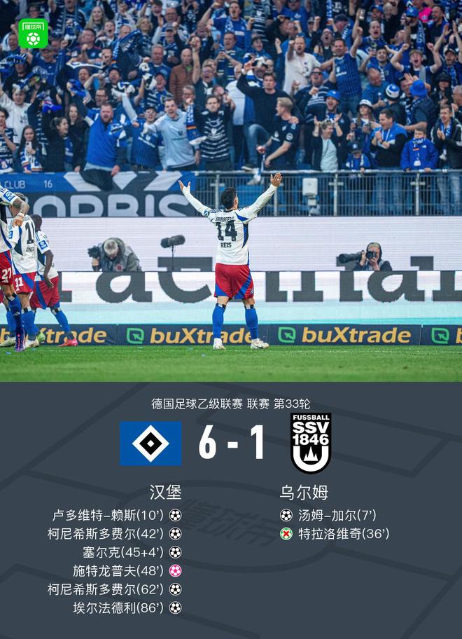 時(shí)隔七年重返德甲!德乙-漢堡6-1逆轉(zhuǎn)烏爾姆提前一輪升級(jí)成功