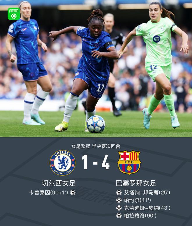 巴薩女足客場4-1切爾西女足,總比分8-2晉級女足歐冠決賽