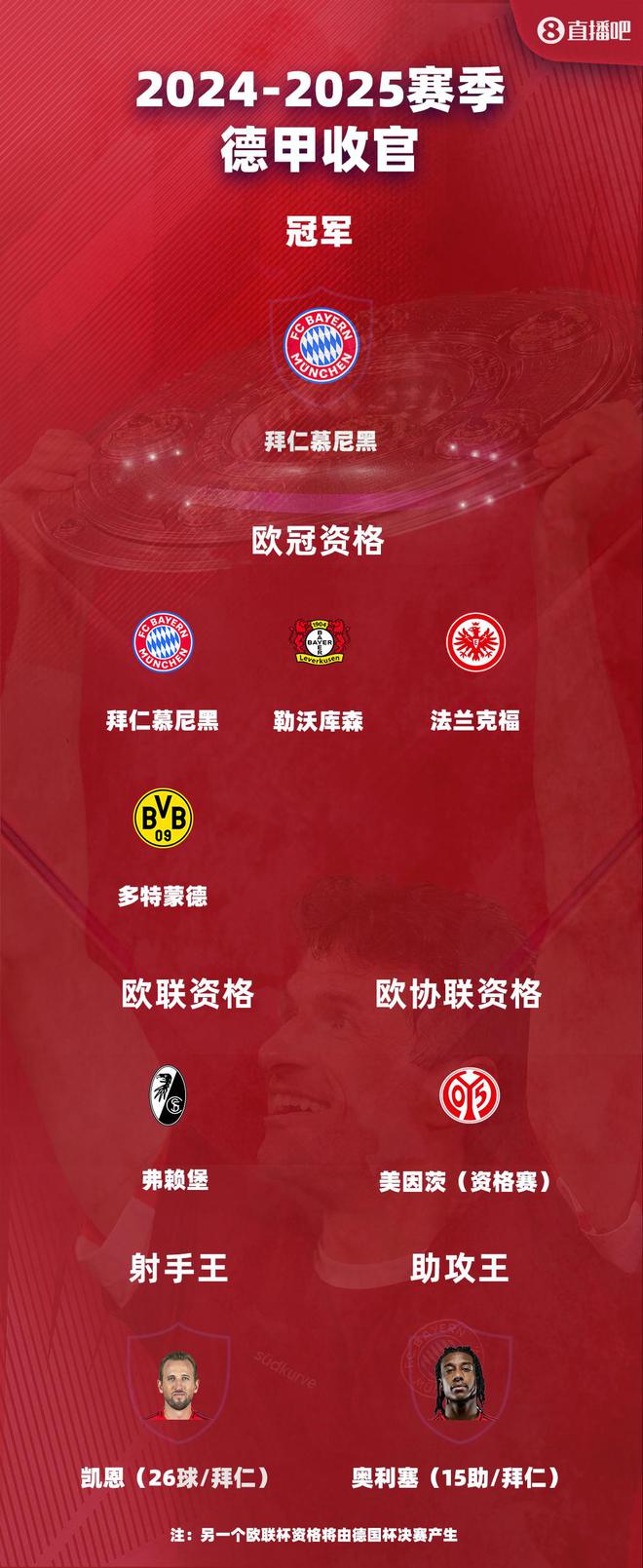 德甲大結局:拜仁奪冠凱恩金靴 多特進歐冠 斯圖加特德丙隊爭歐聯(lián)